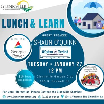 Don't miss the first "Lunch & Learn" of 2026 Tuesday, January 27th at 12 PM at the Glennville Garden Club. We've got a great guest speaker, Mr. Shaun O'Quinn, and a delicious and warm meal lined up for you. Purchase your tickets today or at the door, but be sure you don't miss it!